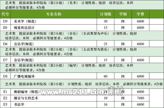 音樂類、舞蹈編導(dǎo)專業(yè)錄?。何幕煽冞_(dá)到省控線且專業(yè)成績分別達(dá)到我校相應(yīng)專業(yè)校考合格線(使用省統(tǒng)考或聯(lián)考成績的達(dá)到省統(tǒng)考或聯(lián)考控制分?jǐn)?shù)線)的進(jìn)檔考生,按專業(yè)成績從高到低順序錄取。