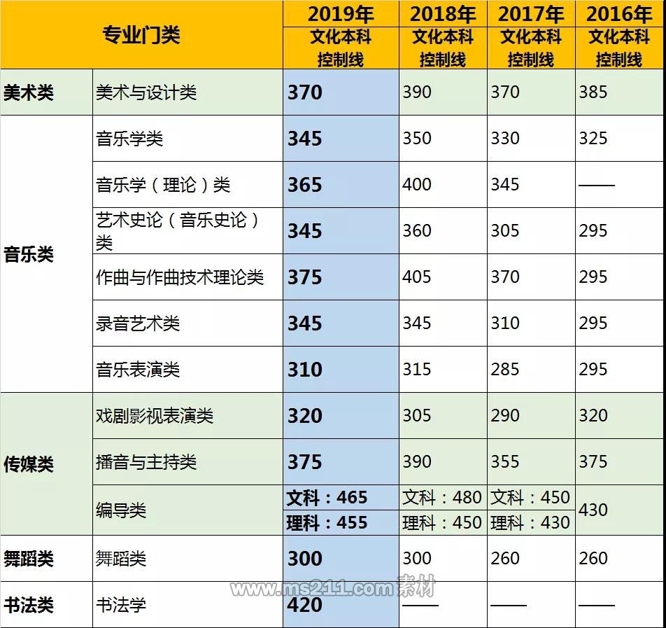 看看上圖,這就是藝考生在高考時(shí)文化要達(dá)到的最低分?jǐn)?shù),除了編導(dǎo)專業(yè)外,其他都不分文理科。