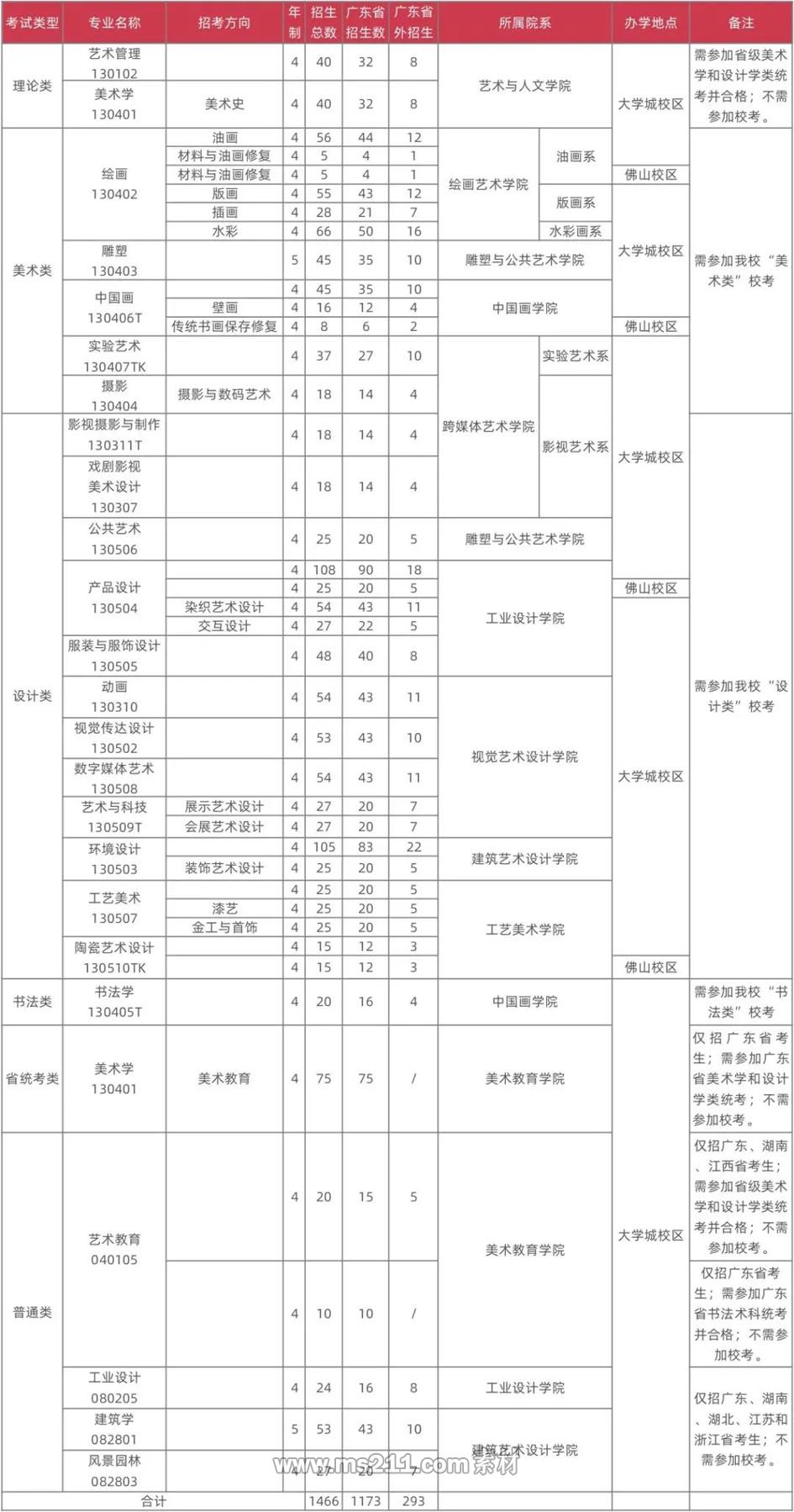 1.2021年我校在全國計劃招生1466人,其中廣東省1173人,廣東省外293人(招生計劃最終以廣東省教育廳、廣東省發(fā)改委審定為準)。在廣東省外,“理論類”、“美術(shù)類”、“設(shè)計類”、“書法類”專業(yè)具體招生人數(shù)不分配到省??忌毎唇逃亢涂忌谑〉南嚓P(guān)考試規(guī)定報名及考試。