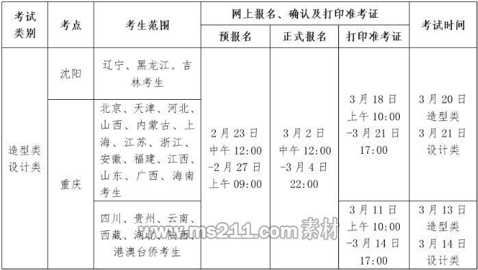 為深入貫徹落實(shí)《教育部辦公廳關(guān)于做好2021年普通高校部分特殊類型招生工作的通知》等文件精神,做好新冠肺炎疫情防控常態(tài)化下的招生考試工作,經(jīng)學(xué)校研究決定,現(xiàn)就我校2021年沈陽、重慶考點(diǎn)造型類、設(shè)計(jì)類本科招生專業(yè)考試相關(guān)事宜公告如下: