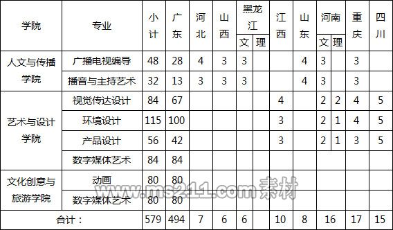 (二)使用專業(yè)??汲煽冧浫〉氖》?br /> 廣東省播音與主持藝術(shù)專業(yè):考生文化成績達到廣東省藝術(shù)類??急究婆武浫∽畹头謹?shù)線,并取得我校專業(yè)??己细褡C前提下,投檔至我校的考生按綜合分從高到低擇優(yōu)錄取,播音與主持藝術(shù)專業(yè)綜合分=高考文化課成績(含政策加分)×40%+專業(yè)??汲煽?times;60%,綜合分相同時,按照專業(yè)???、語文、數(shù)學(xué)、外語成績順序,從高分到低分排序,排序靠前的考生優(yōu)先錄取。