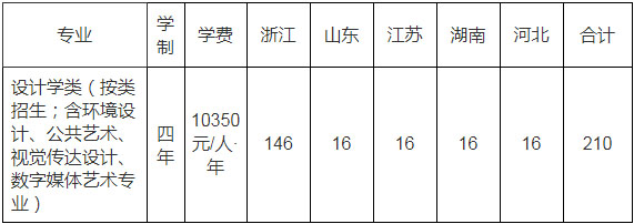 專業(yè)名稱:設計學類;招生計劃210名;藝術類分文理科的省份僅面向藝術類文科考生招生,不分文理科的省份不作文理科報考要求,分省計劃如下: