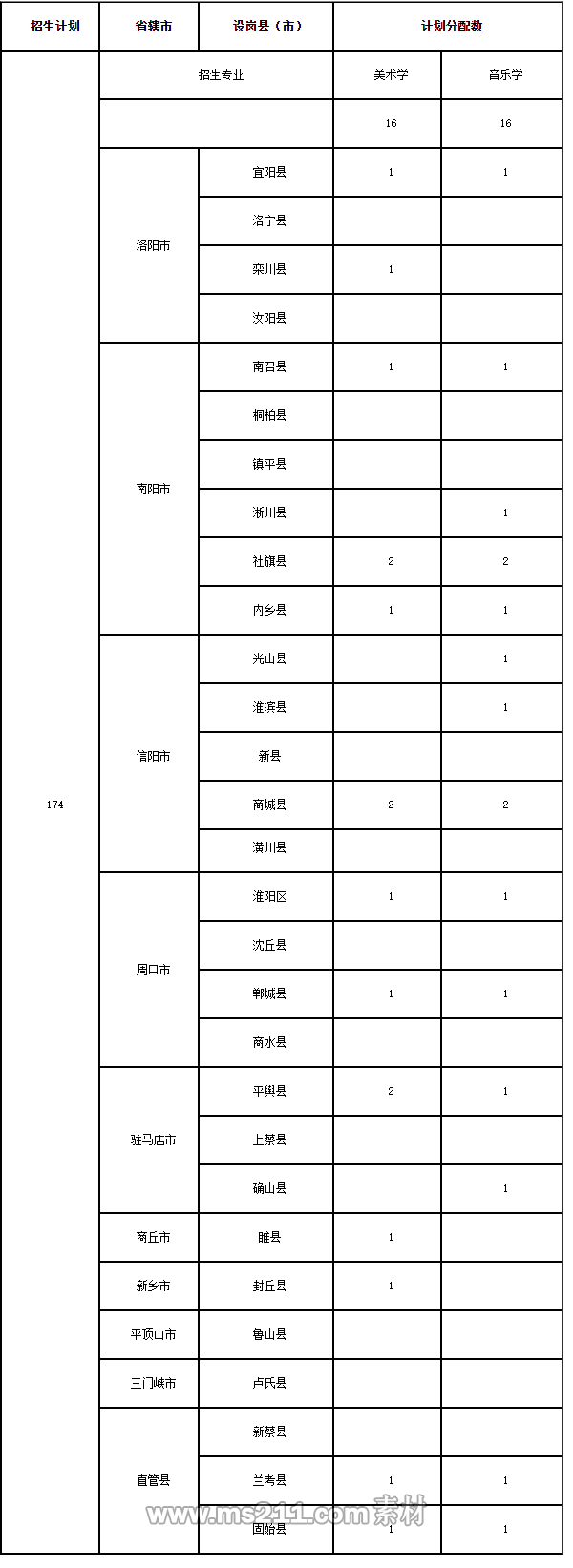 信陽師范學院2021年“地方優(yōu)師專項計劃”公費師范生本科層次招生分布表
