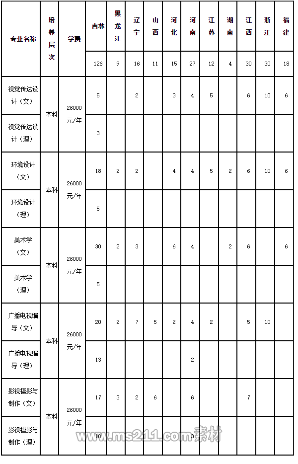 環(huán)境設(shè)計專業(yè)學費標準為26000元/學年;