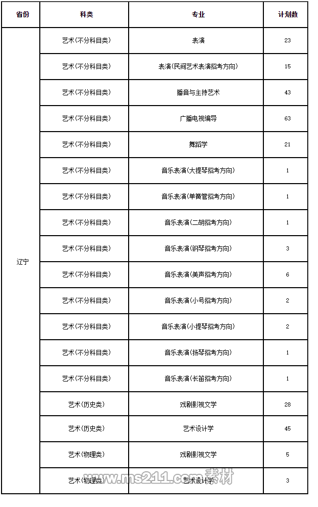 遼寧大學(xué)2021年遼寧省藝術(shù)類(lèi)本科專(zhuān)業(yè)招生計(jì)劃
