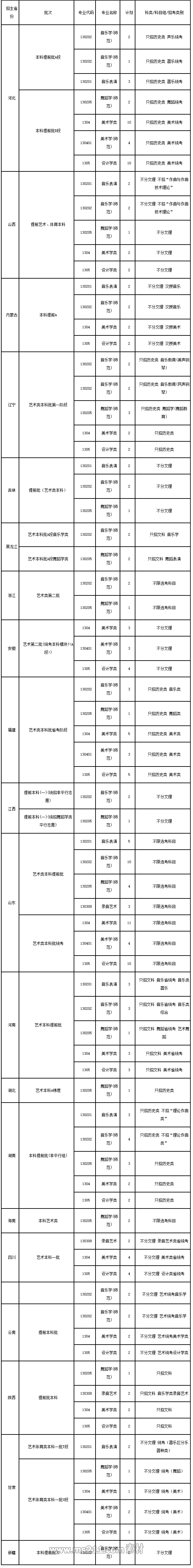 (2) 在山東省招生時,在山東師范大學組織的聯(lián)考本科合格基礎上劃定本專業(yè)的合格生源,具體各專業(yè)的專業(yè)成績計算方式及合格標準將在我校本科招生網(wǎng)另行公布。 5.美術類專業(yè)