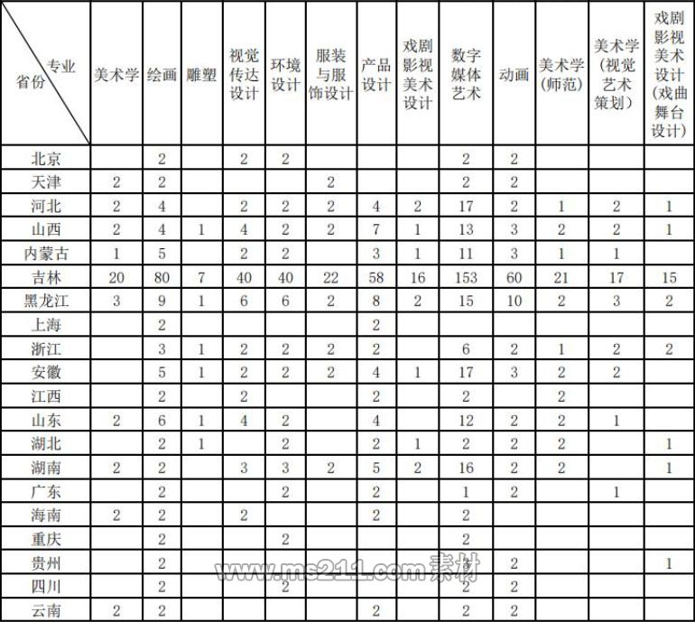 三、吉林藝術(shù)學(xué)院2021年美術(shù)設(shè)計類專業(yè)招生計劃
