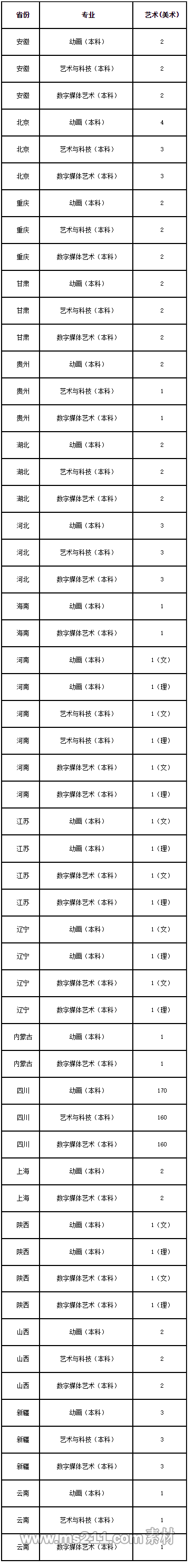 動畫、藝術與科技、數(shù)字媒體藝術、影視動畫、產品藝術設計專業(yè)僅招收美術類考生。