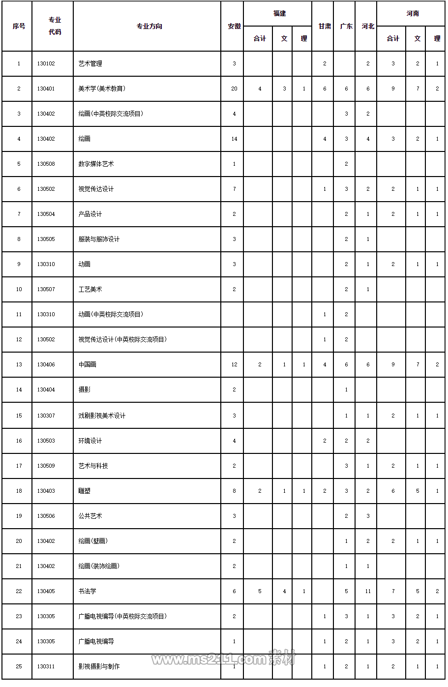 4.按專(zhuān)業(yè)成績(jī)排序錄取的專(zhuān)業(yè):美術(shù)設(shè)計(jì)類(lèi)、書(shū)法類(lèi)、廣編類(lèi)除以上1、2、3項(xiàng)述及專(zhuān)業(yè)以外的專(zhuān)業(yè)。