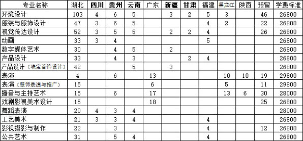 2021年武漢設(shè)計(jì)工程學(xué)院藝術(shù)類本科分省分專業(yè)招生計(jì)劃