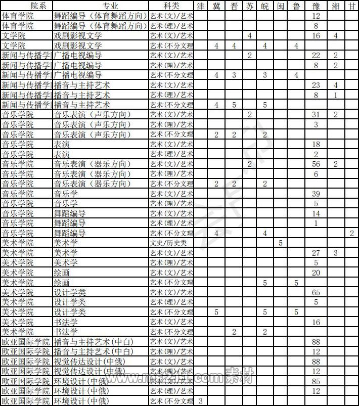 1.音樂表演(器樂)具體情況如下:河南省共62名(含理科生6名),其中古箏2名,竹笛2名,長笛2名(只招文科生);鋼琴7名(含理科生1名);小提琴、中提琴、大提琴、低音提琴、短笛、雙簧管、單簧管、大管、豎琴、小號、圓號、長號、大號、二胡、琵琶、阮、揚琴、笙、嗩吶、打擊樂、手風(fēng)琴、古琴共49名(含理科生5名);河南省外10名(不招收薩克斯、巴烏、葫蘆絲)。