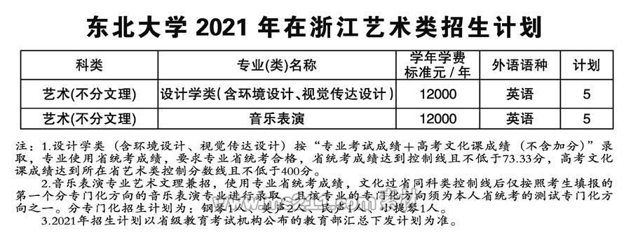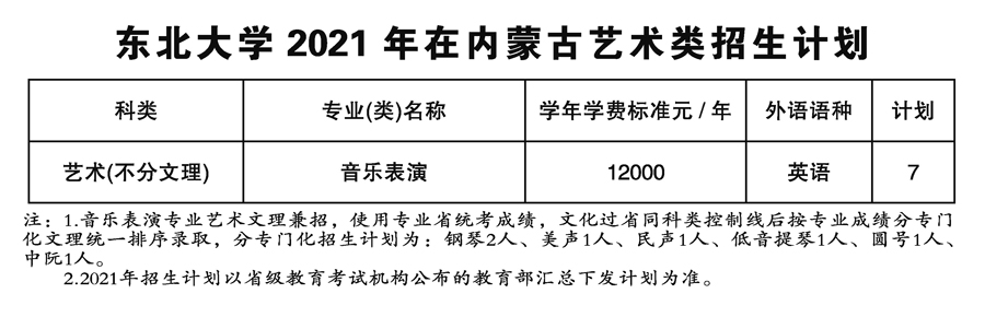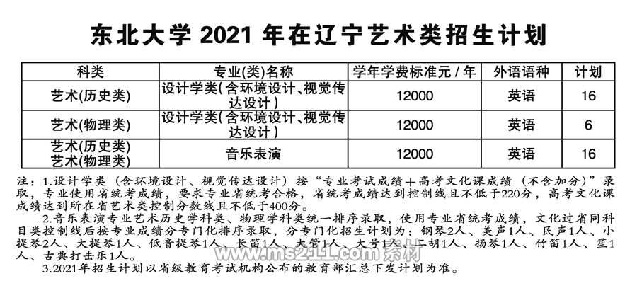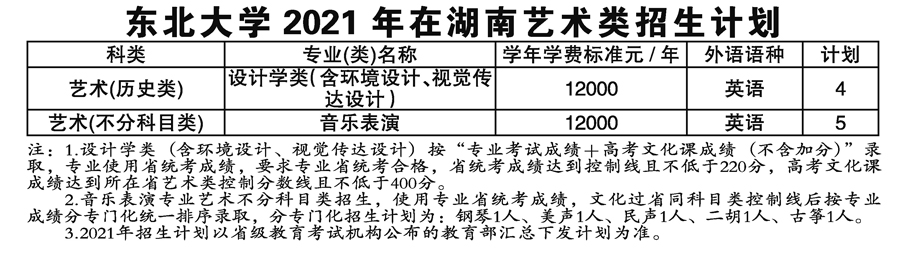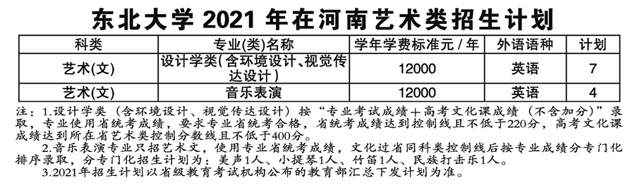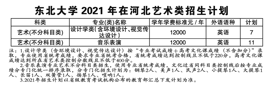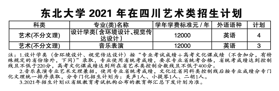 2021年東北大學(xué)藝術(shù)類本科專業(yè)招生計劃