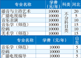 遼寧省美術(shù)類、音樂類、廣播電視編導(dǎo)、播音與主持藝術(shù),河北省美術(shù)類、音樂類,山東省美術(shù)類、廣播電視編導(dǎo)使用所在省組織的藝術(shù)類專業(yè)省統(tǒng)考成績;河北省廣播電視編導(dǎo)、播音與主持藝術(shù),山東省音樂類使用所在省組織的藝術(shù)類專業(yè)校級聯(lián)考成績。