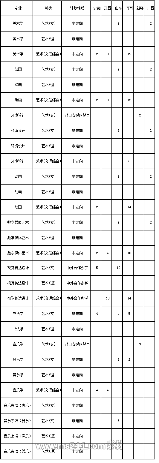 1.美術(shù)學(xué)(師范)、環(huán)境設(shè)計、產(chǎn)品設(shè)計、繪畫、動畫、數(shù)字媒體藝術(shù)、視覺傳達(dá)設(shè)計(中外合作辦學(xué))、書法學(xué)(師范)專業(yè):在高考文化課成績達(dá)到考生所在省最低控制分?jǐn)?shù)線且專業(yè)課成績合格的投檔考生中,按綜合成績從高到低擇優(yōu)錄取。綜合成績=高考文化課成績的60%+專業(yè)課成績的100%。綜合成績相同時,按照專業(yè)課成績從高到低擇優(yōu)錄取,專業(yè)課成績再次相同時,按高考單科成績從高到低擇優(yōu)錄取。視覺傳達(dá)設(shè)計(中外合作辦學(xué))只錄取有專業(yè)志愿的考生。