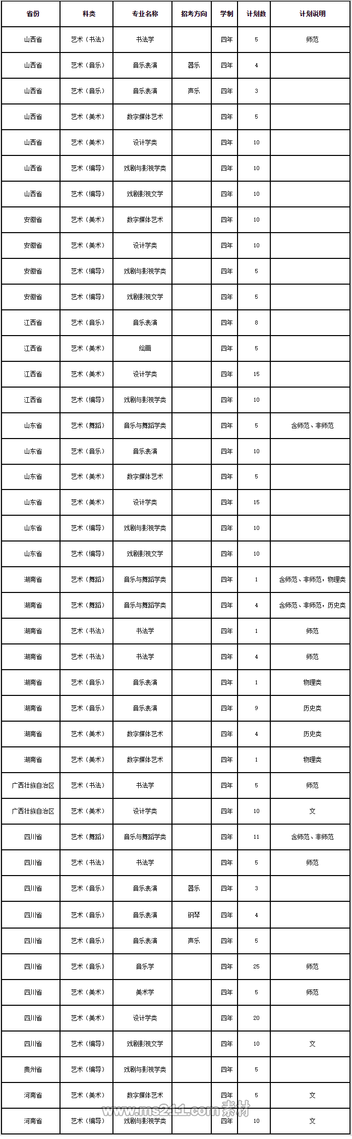 1.進檔考生高考文化成績、專業(yè)成績須達到各?。ㄗ灾螀^(qū)、直轄市)劃定的相關(guān)專業(yè)本科錄取控制分數(shù)線。書法學(xué)在重慶認可四川美術(shù)學(xué)院??汲煽?,音樂表演在山東認可山東師范大學(xué)組織的聯(lián)考成績,其余藝術(shù)類專業(yè)均認可當(dāng)?shù)卣猩荚嚥块T組織的相關(guān)專業(yè)統(tǒng)考或聯(lián)考成績。