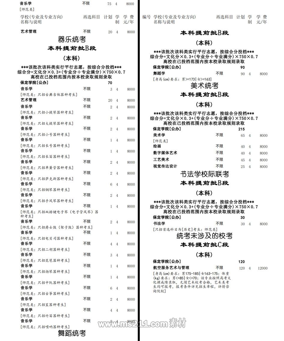 學(xué)校對符合國家和各省(自治區(qū)、直轄市)照顧條件的加分或降分投檔考生,依據(jù)教育部及考生所在省(自治區(qū)、直轄市)招生委員會相關(guān)政策執(zhí)行,承認其加分成績。 1. 音樂類、舞蹈類、美術(shù)類本科專業(yè)