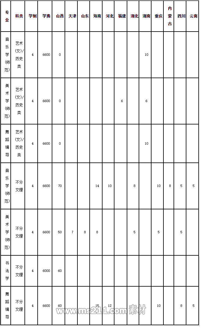 高考文化成績必須達到生源所在省劃定的藝術(shù)類專業(yè)本科相應(yīng)批次錄取控制分數(shù)線。藝術(shù)類專業(yè)成績使用各省統(tǒng)考和測試成績,學(xué)校根據(jù)考生專業(yè)成績從高分到低分依次錄取。若專業(yè)成績并列,則按文化課成績擇優(yōu)錄取。