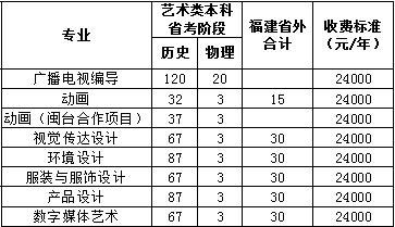 福建省外各省份的藝術(shù)類專業(yè)錄取規(guī)則按生源省份規(guī)定的錄取原則執(zhí)行,無具體規(guī)定的,參照福建省藝術(shù)類錄取原則執(zhí)行。我校在福建省藝術(shù)類招考中安排在本科批藝術(shù)類本科批省考階段(含美術(shù)類、編導(dǎo)類)錄取,投檔錄取模式按照考生藝術(shù)類綜合分實(shí)行專業(yè)平行志愿投檔,在綜合分相等的情況下,學(xué)校參照福建省藝術(shù)類