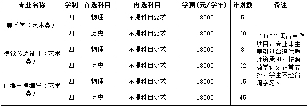2、面向福建省外:采用“專業(yè)清”的專業(yè)錄取原則。以考生的專業(yè)文化綜合分為依據(jù),專業(yè)文化綜合分相同時(shí),按照美術(shù)類為專業(yè)成績、編導(dǎo)類為文化成績從高分到低分排序。