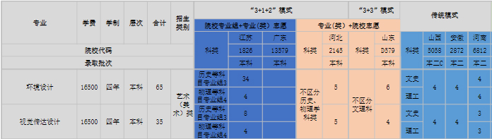 1. 學院開設(shè)環(huán)境設(shè)計、視覺傳達設(shè)計兩個藝術(shù)類專業(yè),2021年面向江蘇省、河北省、山東省、山西省、安徽省、河南省招生。