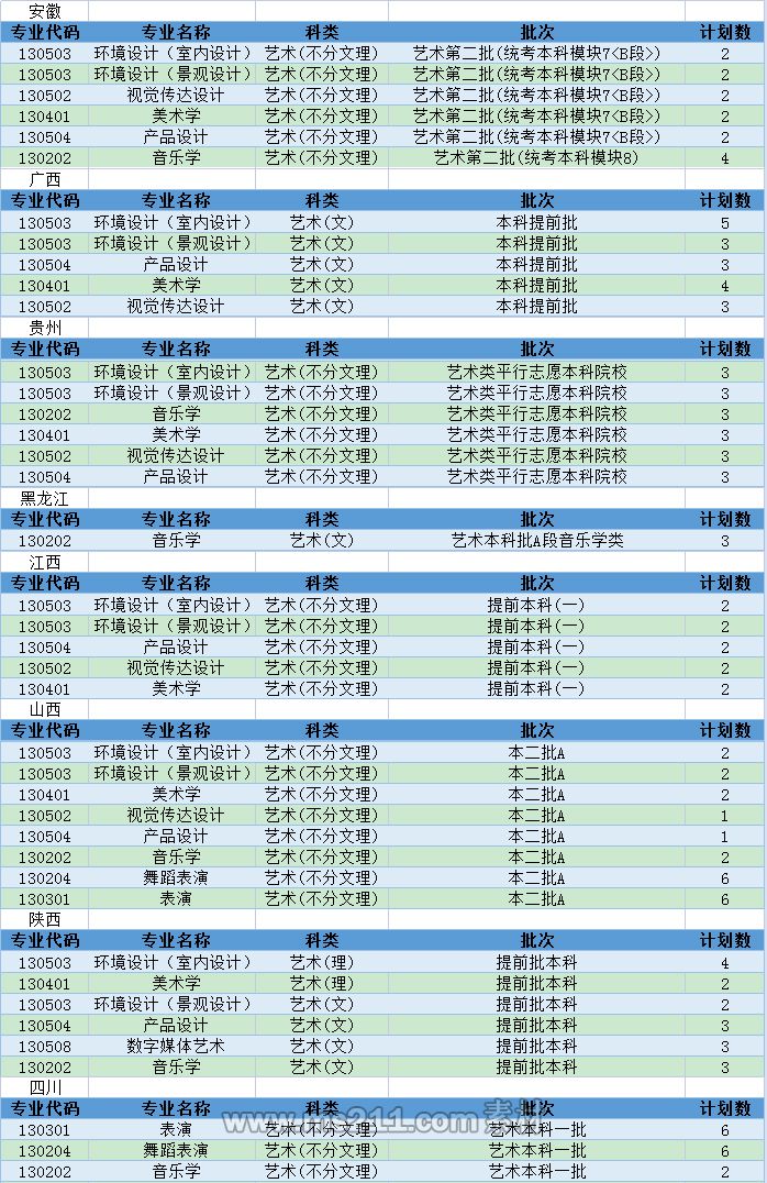 考生高考文化成績和專業(yè)成績均需分別達(dá)到考生所在生源省份相應(yīng)的藝術(shù)類本科錄取最低控制分?jǐn)?shù)線,按投檔成績從高到低錄取。當(dāng)投檔成績相同時(shí),依次按專業(yè)分、文化分由高到低排序錄取。