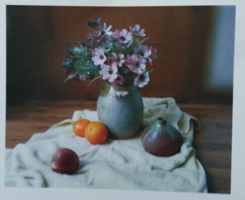 三、模擬寫生內(nèi)容:一束鮮花,兩個(gè)陶罐,一個(gè)蘋果,兩個(gè)橘子,一塊淺色襯布。(見(jiàn)圖片小樣)