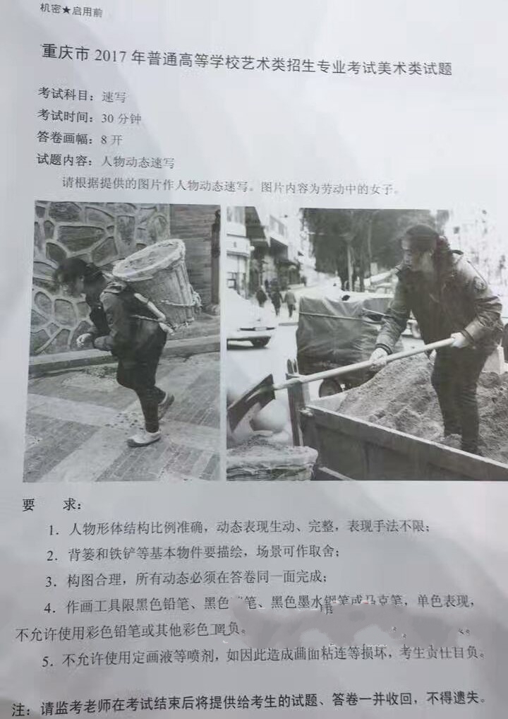 2017年重慶美術(shù)聯(lián)考/統(tǒng)考速寫考題