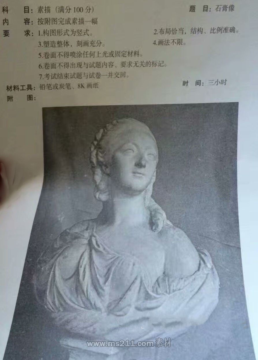 素描考題內(nèi)容:女神紫石膏像,8k,滿分100分
