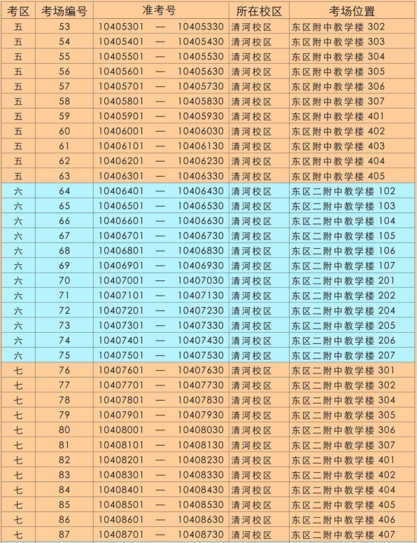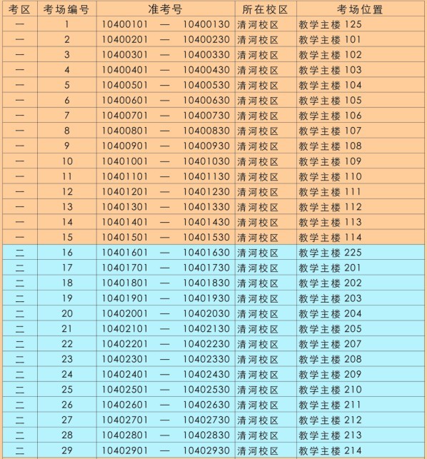 2.憑準考證上的準考號,根據(jù)體育館門前及清河校區(qū)大門內(nèi)《考場示意圖》查找本人所在考場;
