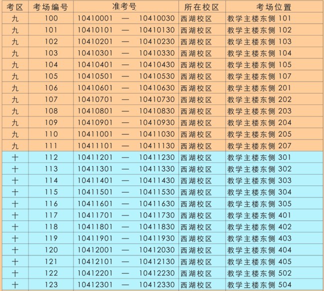 3.記下本人考場所在位置并前往認考場。