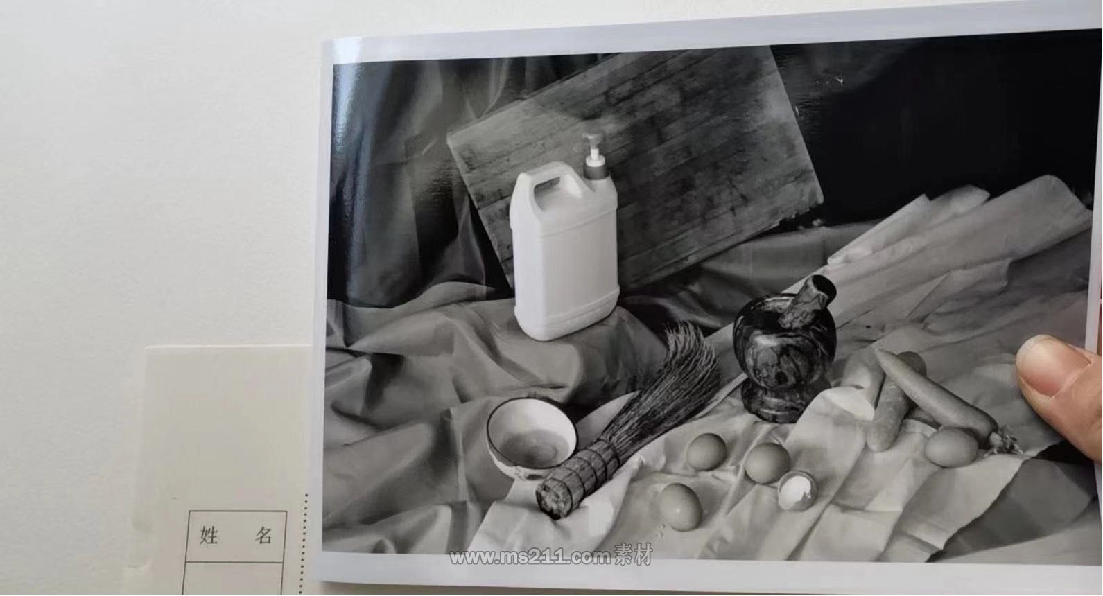 考試題目:靜物組合,畫照片,如下圖。