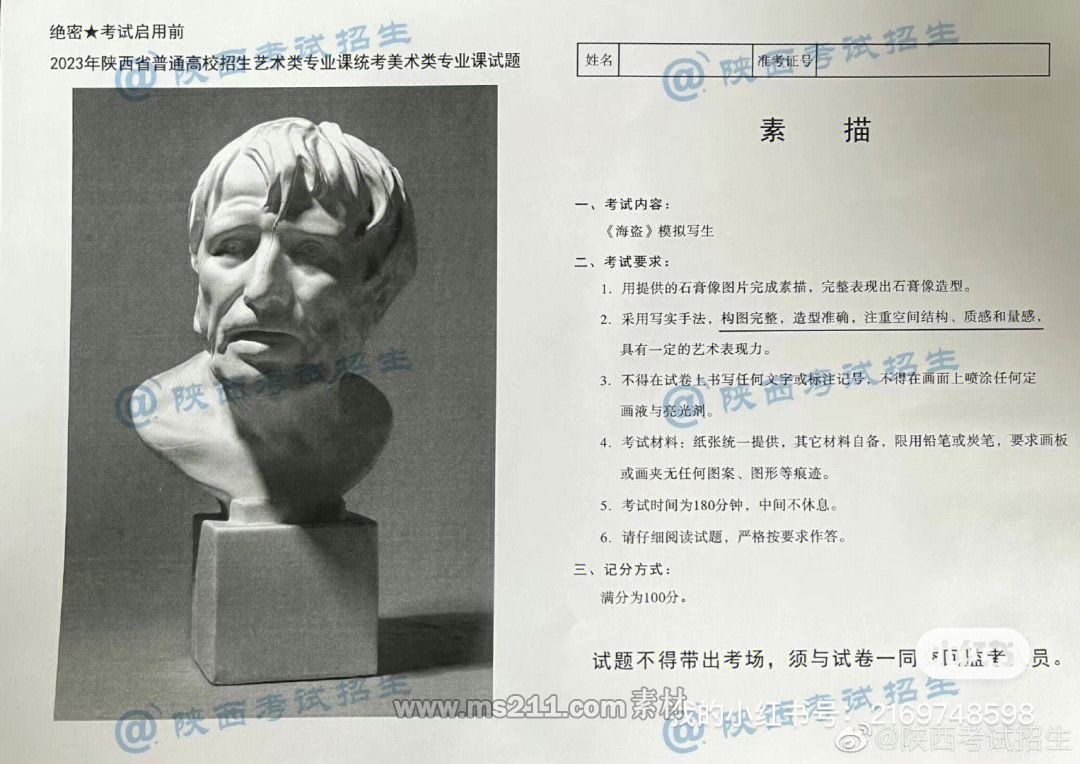 4.考試材料:紙張統(tǒng)一提供, 其它材料自備,限用鉛筆或炭筆,要求畫板或畫夾無任何圖案、圖形等痕跡。