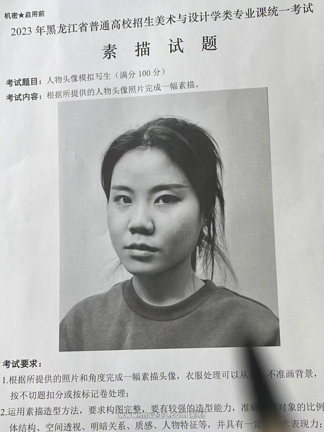 考試要求:根據(jù)所提供的照片和角度完成一幅素描頭像,衣服處理可以從簡(jiǎn),不準(zhǔn)畫(huà)背景。