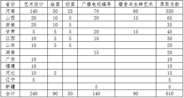2013年藝術(shù)類招生計(jì)劃(初定)
