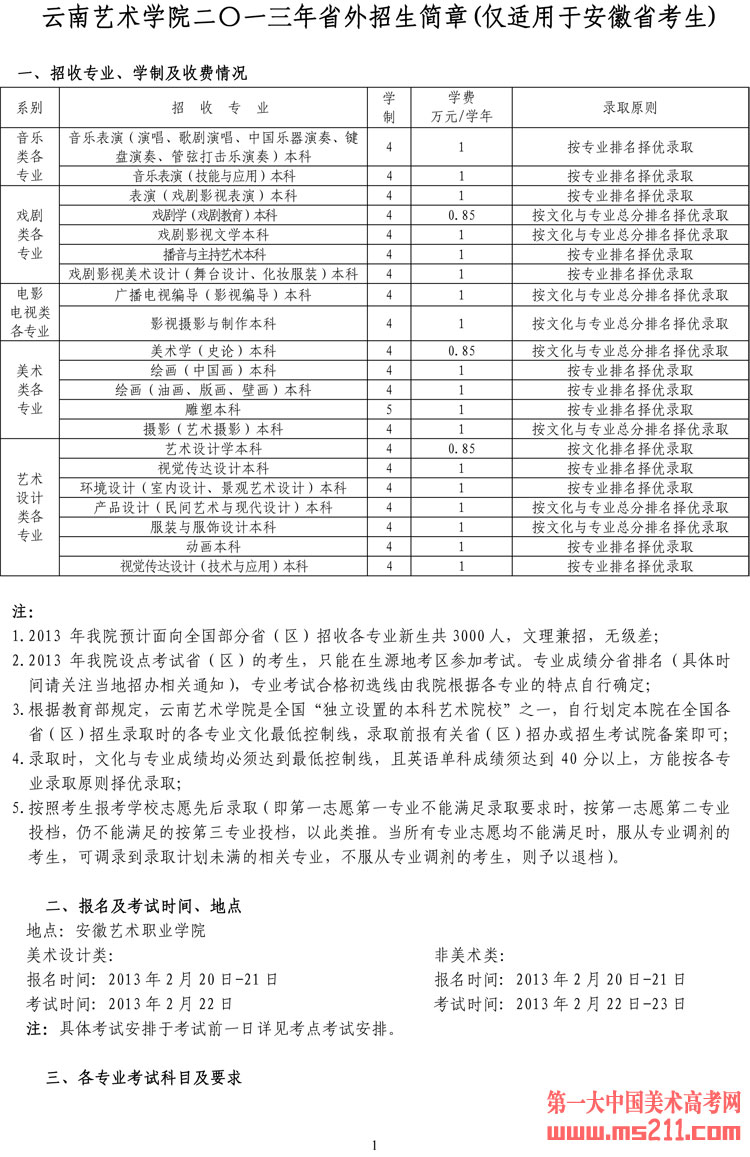 上一篇:2013年云南藝術(shù)學(xué)院藝術(shù)類美術(shù)高考招生簡章(廣東) 下一篇:2013年云南藝術(shù)學(xué)院藝術(shù)類美術(shù)高考招生簡章