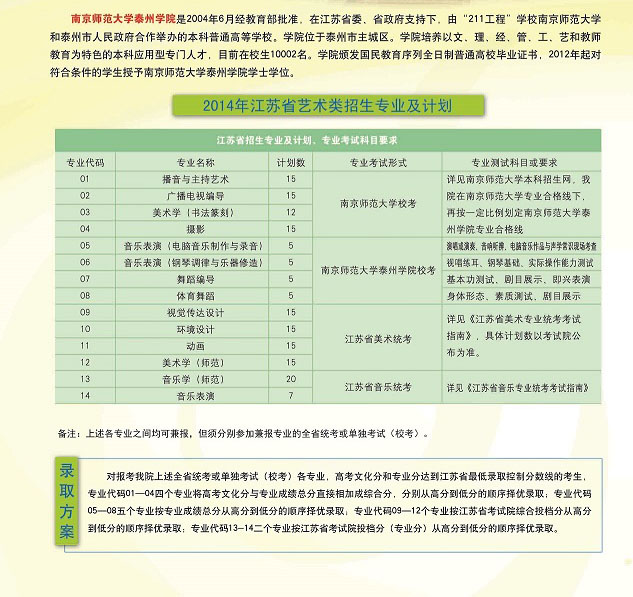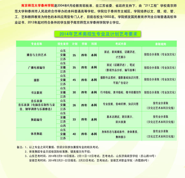 二、南京師范大學(xué)泰州學(xué)院2014年江蘇省藝術(shù)類(lèi)報(bào)考指南