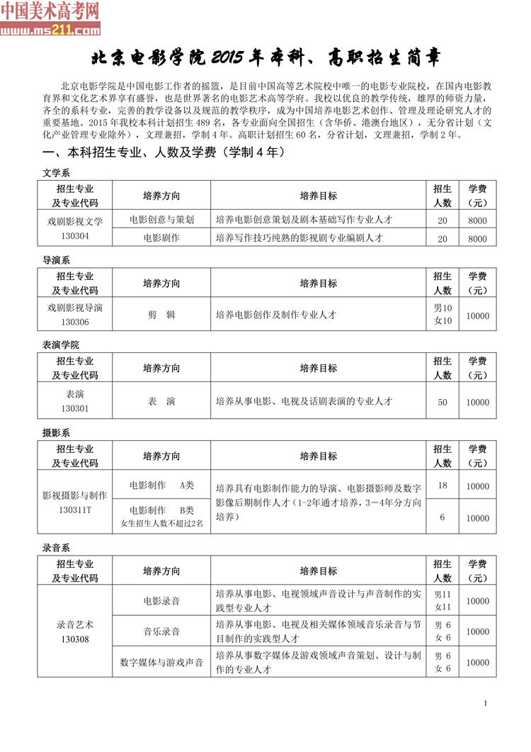 2015年北京電影學(xué)院本科、高職招生簡章01