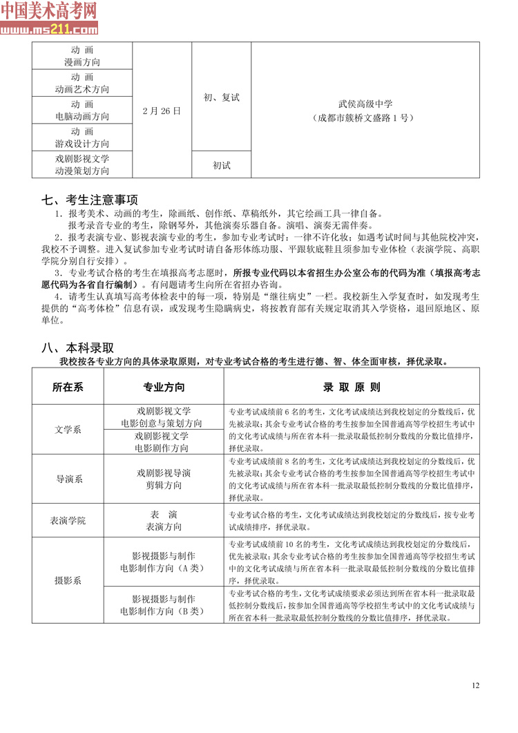 2015年北京電影學(xué)院本科、高職招生簡章12