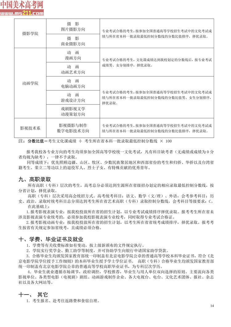 2015年北京電影學(xué)院本科、高職招生簡章14