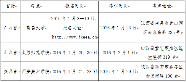三、 廣西區(qū)外各省份藝術(shù)類專業(yè)報名、考試時間及地點