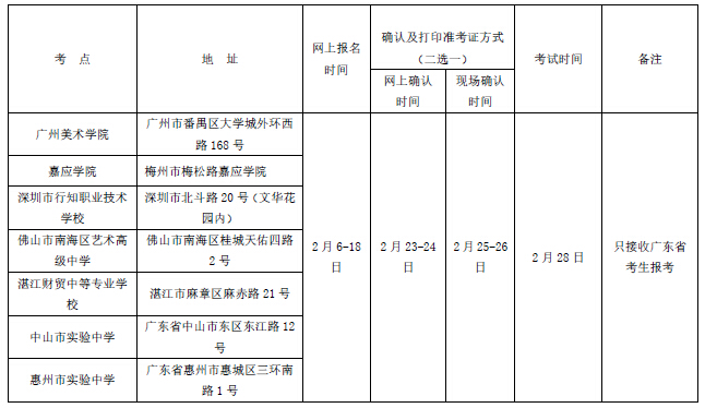 2、各美術(shù)類??紝I(yè)(除美術(shù)學)廣東省內(nèi)考點安排: