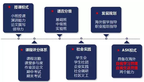 主要為專業(yè)學(xué)分課+出國準(zhǔn)備,更多外教用英文進(jìn)行專業(yè)課教學(xué),真正做到逐漸與國外課堂趨于一致,確保學(xué)生出國就能最快適應(yīng)全英教學(xué)。完成國內(nèi)階段計劃的全部學(xué)分課程后,留學(xué)部老師將指導(dǎo)和協(xié)助學(xué)生完成海外大學(xué)對接工作。