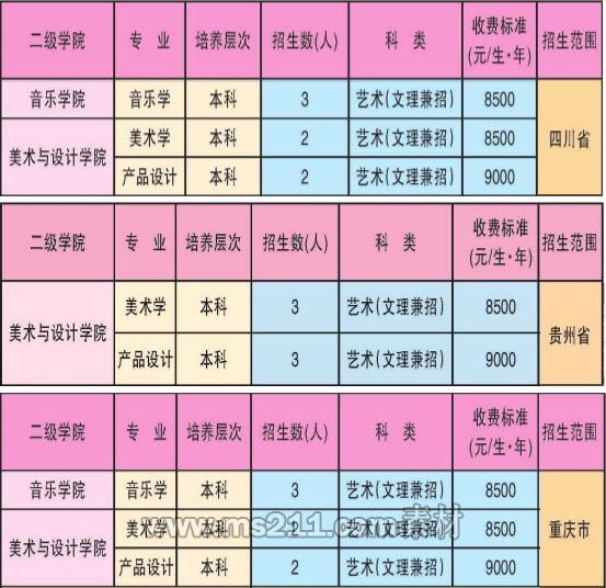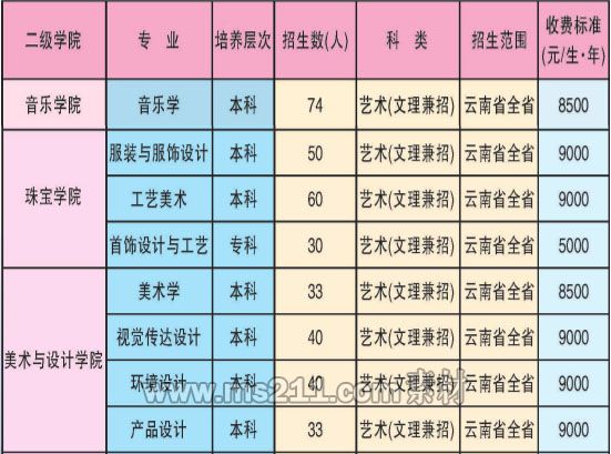 保山學(xué)院2017年云南省藝術(shù)類專業(yè)招生計劃
