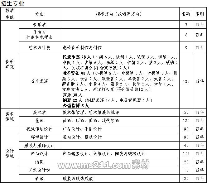 注:考生入學(xué)后,根據(jù)錄取成績(jī)和專業(yè)測(cè)試成績(jī),雙向選擇,分為聲樂和器樂兩個(gè)培養(yǎng)方向。