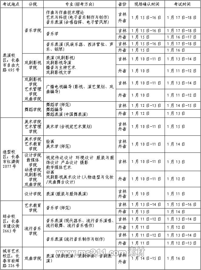 5、由于外省考點(diǎn)多數(shù)使用網(wǎng)上報(bào)名,各考點(diǎn)原則上只接受本省考生參加專業(yè)考試。未設(shè)置考點(diǎn)的省份,請(qǐng)考生到吉林藝術(shù)學(xué)院(吉林省長(zhǎng)春市)參加考試。