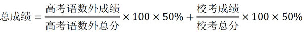 (三)取得合格證且報考我??忌诟呖嘉幕n成績達到生源省份普通本科第一批次錄取控制分?jǐn)?shù)線基礎(chǔ)上,高考語文、數(shù)學(xué)、英語三門總分(不含附加分)和專業(yè)??伎偡终鬯愠砂俜种坪?,各按 50%的比例折合成總成績排序,擇優(yōu)錄取,寧缺毋濫??偝煽冇嬎愎饺缦拢?/p>