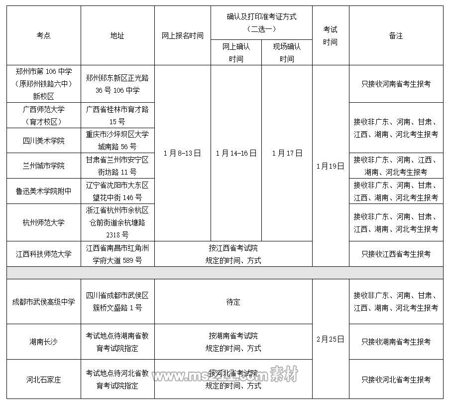 ?。ㄒ唬└髅佬g(shù)類校考專業(yè)(除美術(shù)學(xué)專業(yè)、書法學(xué)專業(yè))廣東省外考試安排: