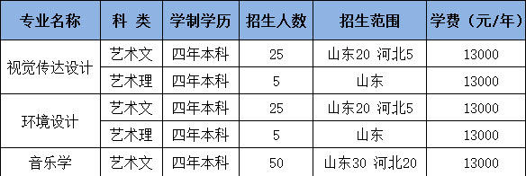 根據(jù)山東省教育廳核準(zhǔn)的《中國石油大學(xué)勝利學(xué)院2018年藝術(shù)類招生章程》,2018年學(xué)校擬面向山東省、河北省招生藝術(shù)類本科生110人。詳見下表: