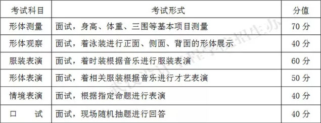 2.表演(服飾表演與推廣)專業(yè)考試科目及分值(總分300分)