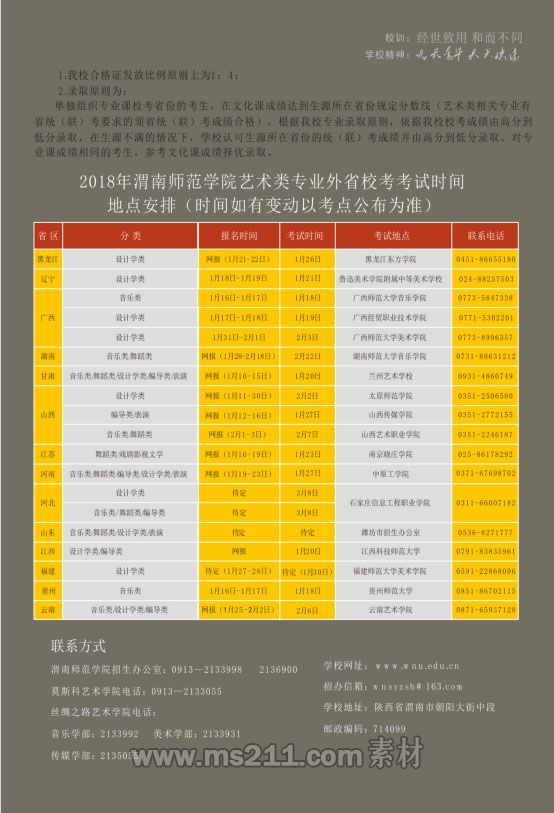 相關(guān)熱詞搜索:渭南 藝術(shù)類(lèi) 招生簡(jiǎn)章 2018年渭南師范學(xué)院藝術(shù)類(lèi)招生簡(jiǎn)章